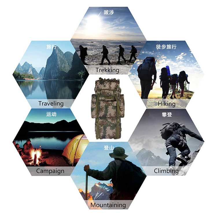 65L camouflage large capacity mountaineering backpack tactical camping backpack Oxford backpack