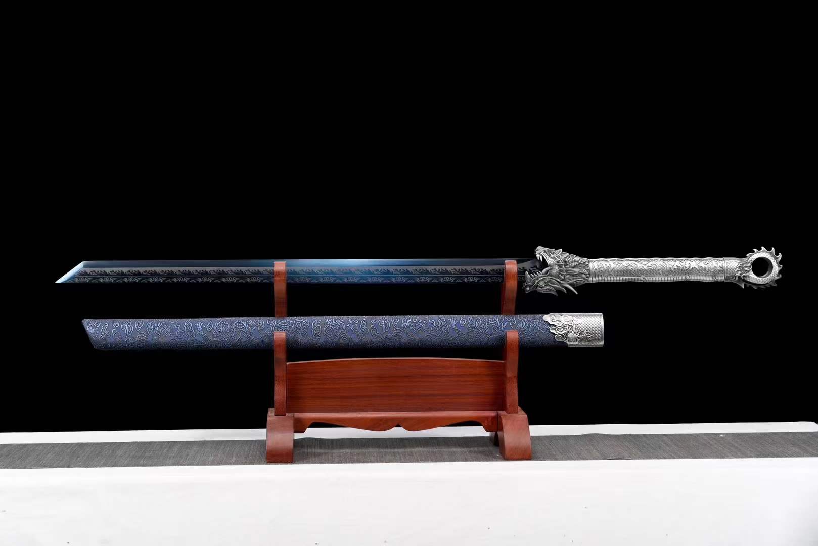 Handmade Pride High Manganese Steel Chinese Sword With Blue Engraving Blade
